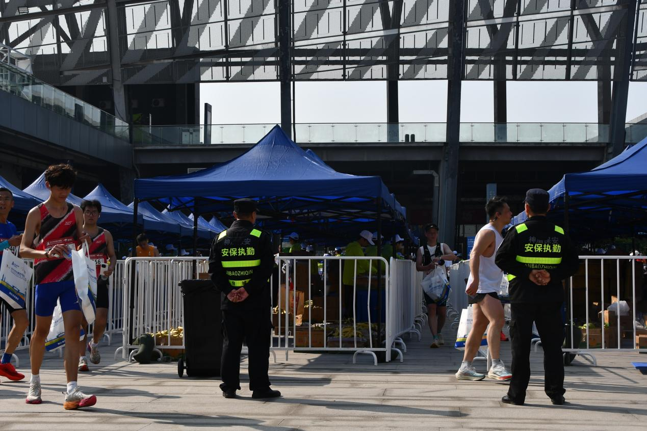 賽前,公司制定安保方案,組織骨干力量踏勘賽道沿線、起終點(diǎn)、補(bǔ)給站等重點(diǎn)區(qū)域,科學(xué)劃分安保責(zé)任區(qū),明確崗位職責(zé)與要求,確保安保部署無死角。比賽當(dāng)日,公司投入670余名安保人員,凌晨3時(shí)到達(dá)指定崗位,迅速投入工作。在賽道沿線,他們引導(dǎo)選手有序通過,勸阻無關(guān)車輛和人員,保障賽道暢通;在起終點(diǎn)區(qū)域,耐心引導(dǎo)選手存包、檢錄,維護(hù)秩序,防止擁擠踩踏;在補(bǔ)給站和醫(yī)療點(diǎn),協(xié)助搬運(yùn)物資、引導(dǎo)選手補(bǔ)給。面對參賽人員多、情況復(fù)雜等挑戰(zhàn),安保人員堅(jiān)守崗位,落實(shí)安保措施,以專業(yè)素養(yǎng)和嚴(yán)謹(jǐn)態(tài)度為賽事筑牢安全防線,確保2026京東宿遷馬拉松順利進(jìn)行,獲賽事組委會、參賽選手和社會各界好評。